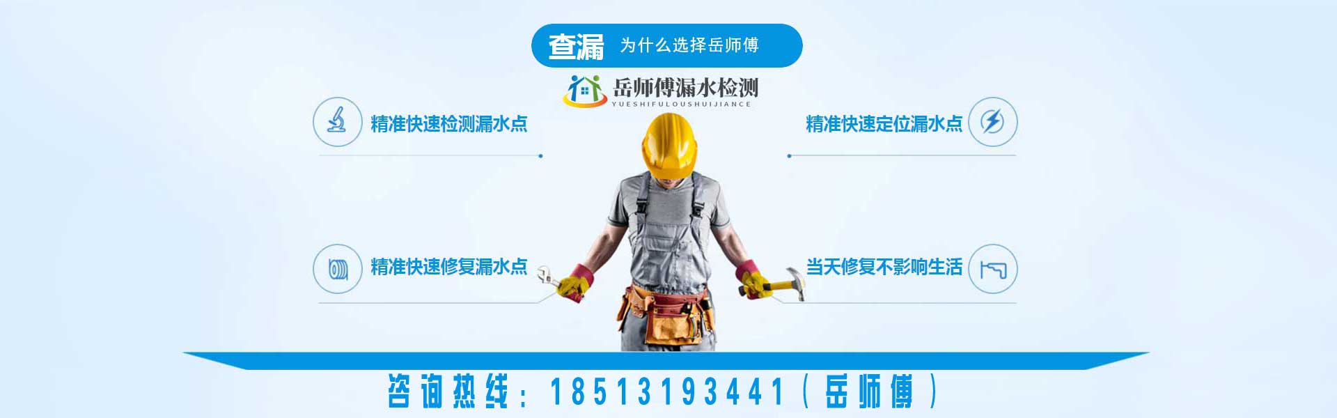 北京岳師傅漏水檢測維修(北京京誠快修漏水檢測有限公司)專業(yè)從事漏水檢測維修服務(wù),包括衛(wèi)生間漏水檢測,廚房漏水檢測,房屋漏水檢測,地暖漏水檢測,管道漏水檢測,家庭暗管滲水查漏,室內(nèi)外漏水檢測,暗管漏水檢測等,針對各種漏水檢測維修情況提供最佳方案及服務(wù)。引進進口設(shè)備儀器,配備相關(guān)儀,巡管儀,熱像儀,測漏儀,氣體示蹤儀專業(yè)設(shè)備查找室外暗埋熱力管網(wǎng)漏水,自來水管網(wǎng)漏水消防管網(wǎng)漏水,探測深度可達地下5米深的500型管道漏水點精準定位。室內(nèi)漏水精準定位漏水點、零誤差維修墻角起堿、掉皮。免砸磚維修防水,水管打壓。以技術(shù)領(lǐng)先為基、誠信服務(wù)為準、質(zhì)量保證為則,建立一批技過硬的技術(shù)人員經(jīng)驗豐富服務(wù)領(lǐng)先的工程團隊,...